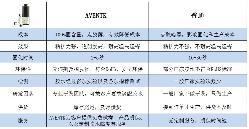 AVENTK 玻璃粘接UV膠水VS普通UV膠水