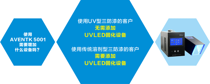 AVENTK 5001系列UV/濕氣雙固化三防漆——主要應用于各類(lèi)線(xiàn)路板三防保護,不含有機溶劑,100%固含;能對陰影區進(jìn)行二次濕氣固化,在黑燈下具有亮藍熒光色,方便在線(xiàn)檢測。符合 UL 要求,提供免費試樣