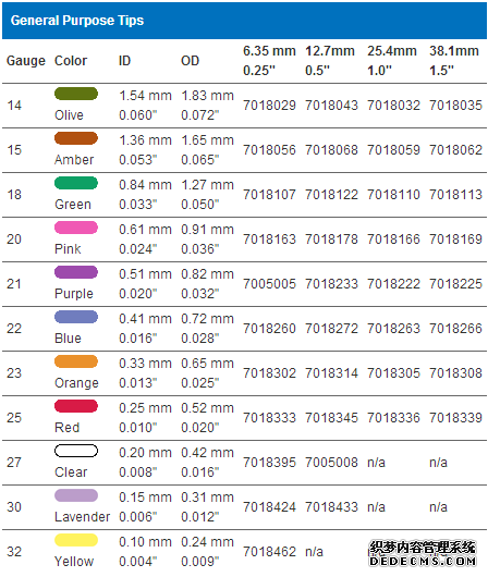 具有純聚丙烯 SafetyLok™ 針座的鈍化的不銹鋼針頭可以處理多種流體和點(diǎn)膠應用。針頭的長(cháng)度有 1/4”、1/2”、1” 和 1-1/2”幾種, 內部半徑范圍在 0.060” 至 0.004”之間。