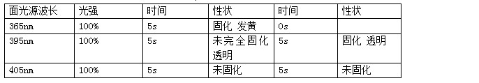 從實(shí)驗結果可以看出不同波段對UV膠水的固化結果是有顯著(zhù)影響的。膠層發(fā)黃是在365nm這個(gè)波段發(fā)生,一般我們都知道波長(cháng)越短能量越高,而且相同時(shí)間下其他兩個(gè)波段膠水并未固化。