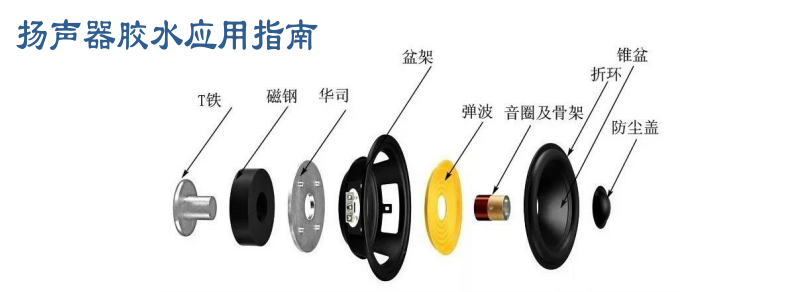 3.1044型號UV濕氣雙固化膠:這是一款UV+濕氣雙固化膠水,在通過(guò)UV光照射固化后,縫隙及UV光無(wú)法完全照射的地方還可二次濕氣固化,適合用于揚聲器組件粘接應用。