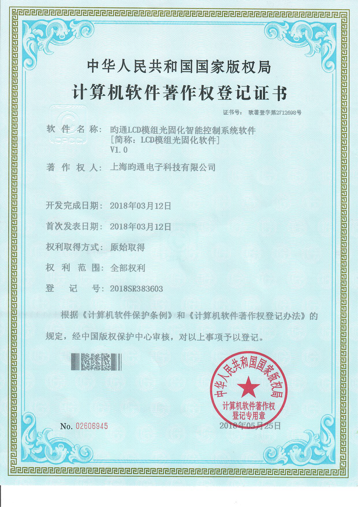 【LCD UV固化膠】LCD模組光固化軟件著(zhù)作